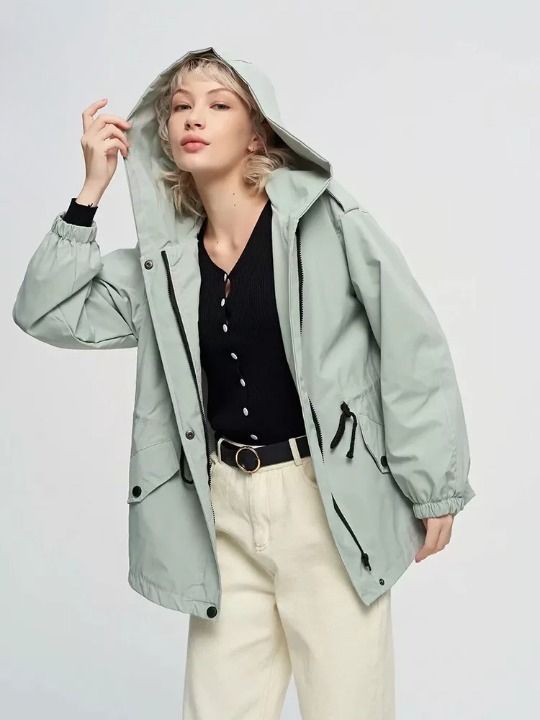 Chaqueta de mujer a la moda con capucha.