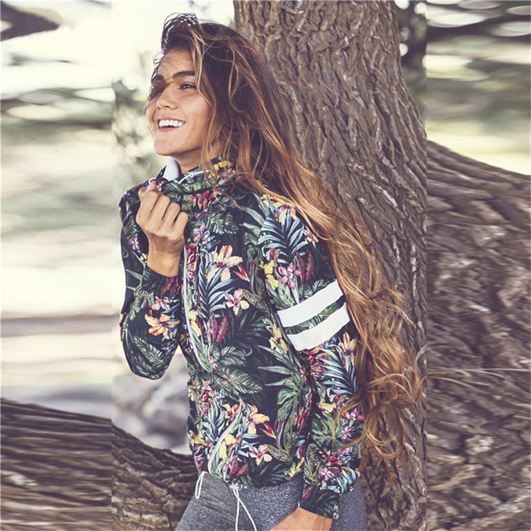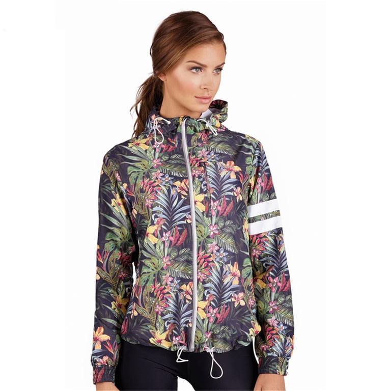 Chaqueta de mujer floral suave de transición con rayas.