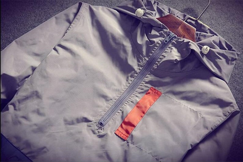 Mantente seco con esta chaqueta impermeable con capucha.