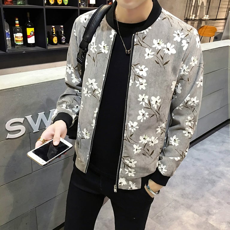 Chaqueta de primavera para hombre con flores - Gris