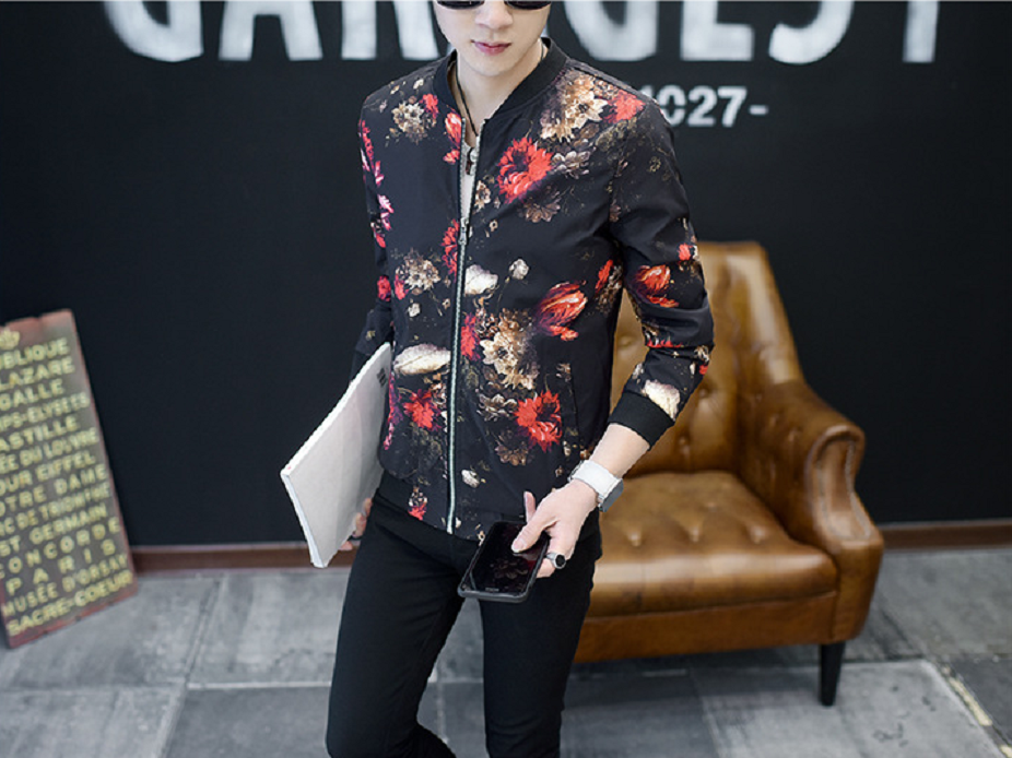 Chaqueta de primavera/otoño para hombre de calidad con flores - Negra