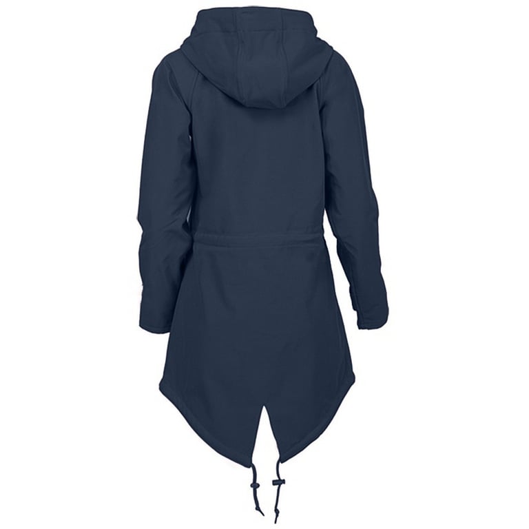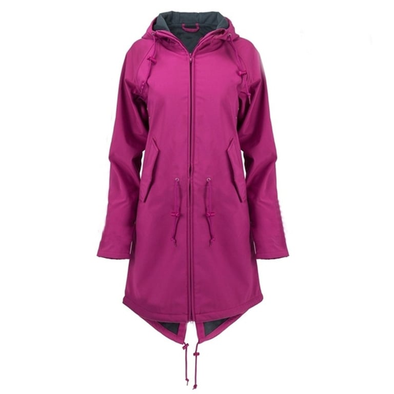 Chaqueta larga impermeable con cremallera y capucha para mujer.