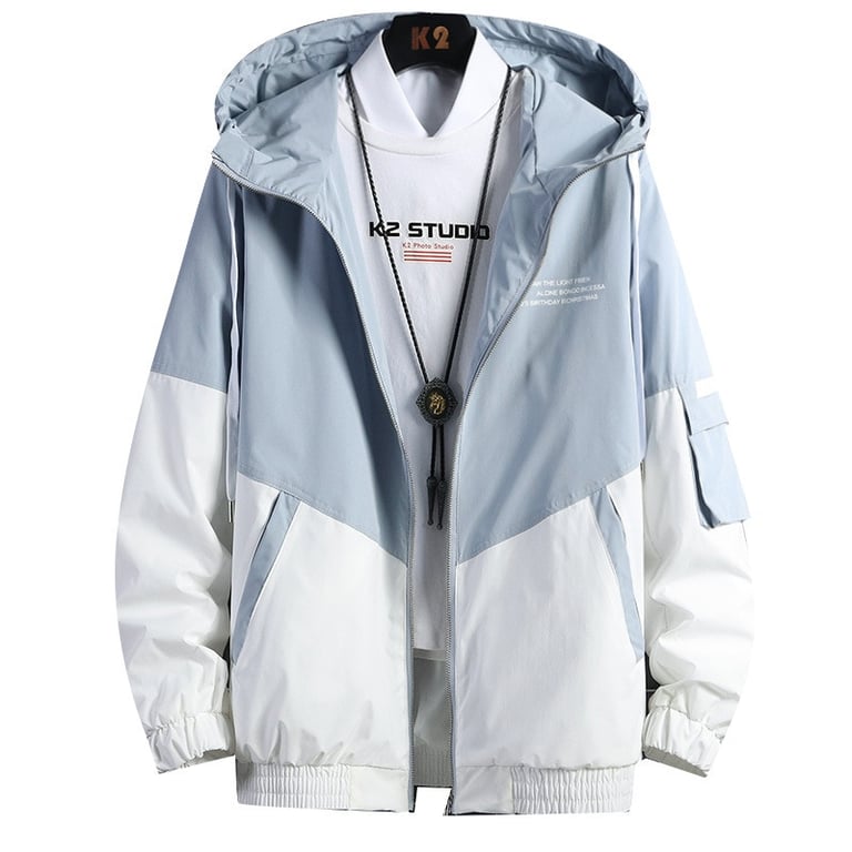 Chaqueta moderna de primavera para hombre, bicolor y con capucha.