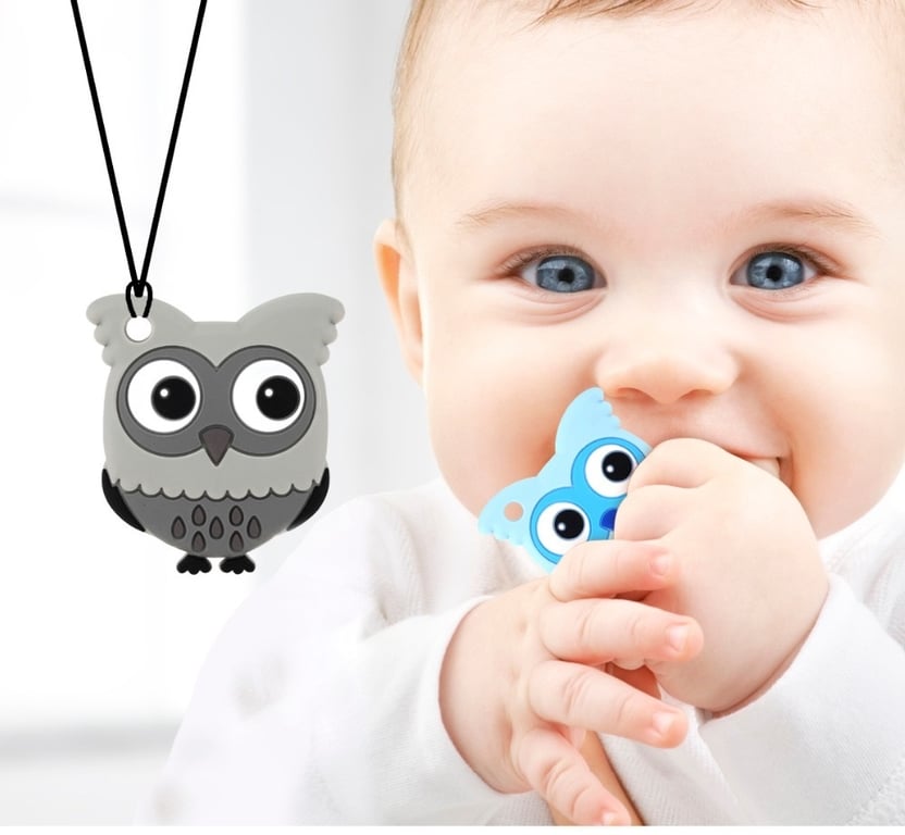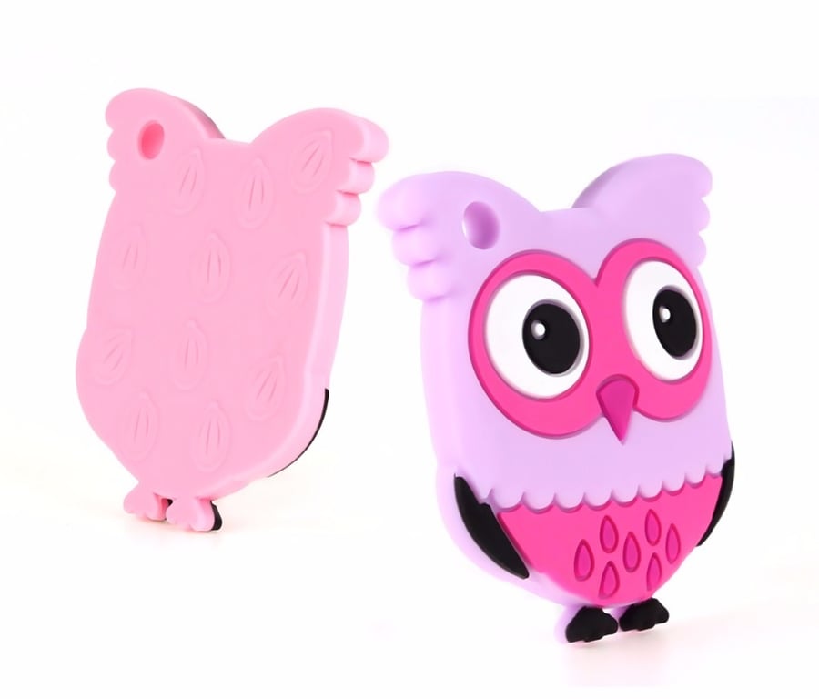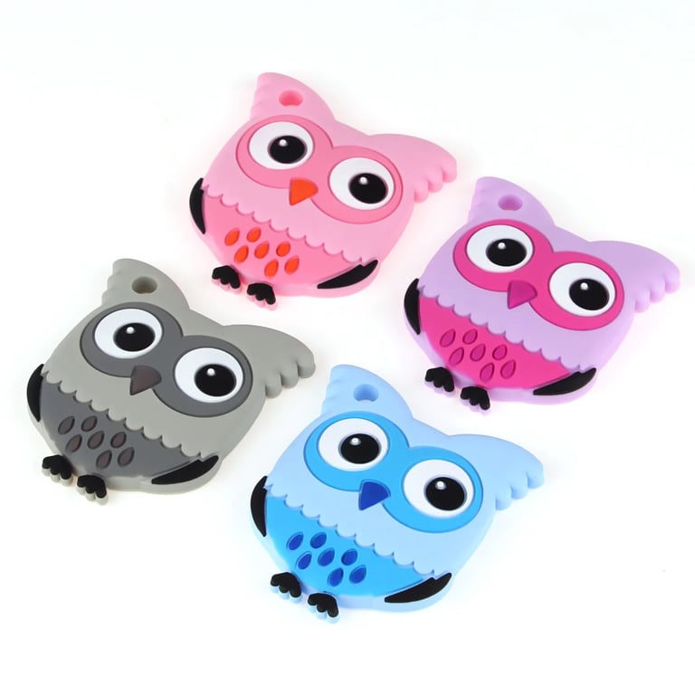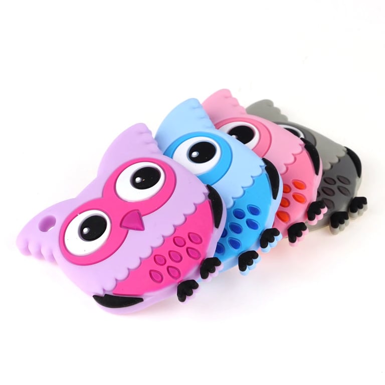 El mordedor de silicona para niños sirve para masajear las encías. Con este adorable búho, puedes pasar una cinta para que el niño lo tenga siempre consigo.