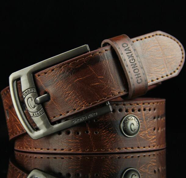 Cinturón de hombre de cuero sintético con hebilla de metal. Longitud 110 cm. Disponible en varias opciones de color.