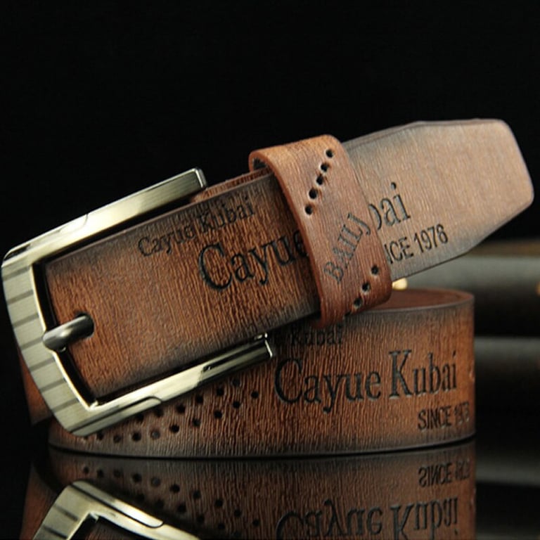 Cinturón de hombre de cuero sintético con hebilla de metal. Longitud 110 cm. Disponible en varias opciones de color.