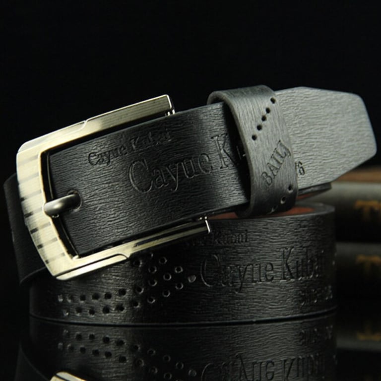 Cinturón de hombre de cuero sintético con hebilla de metal. Longitud 110 cm. Disponible en varias opciones de color.