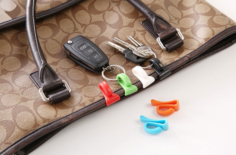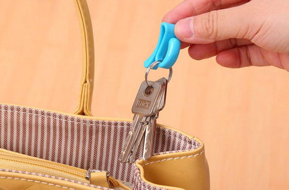 Simplemente insertamos el clip en el bolsillo interior del bolso y colgamos cualquier llave en el gancho.