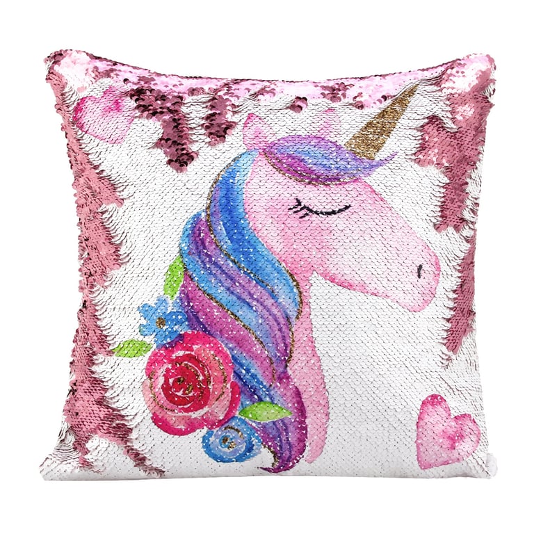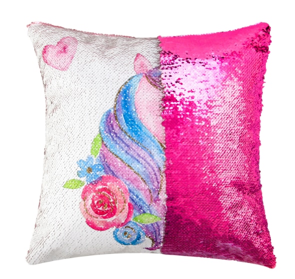 Almohada de niña con purpurina y unicornio