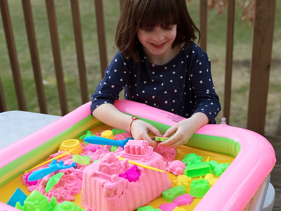 Mini arenero para niños en casa sin desorden.