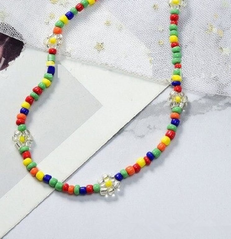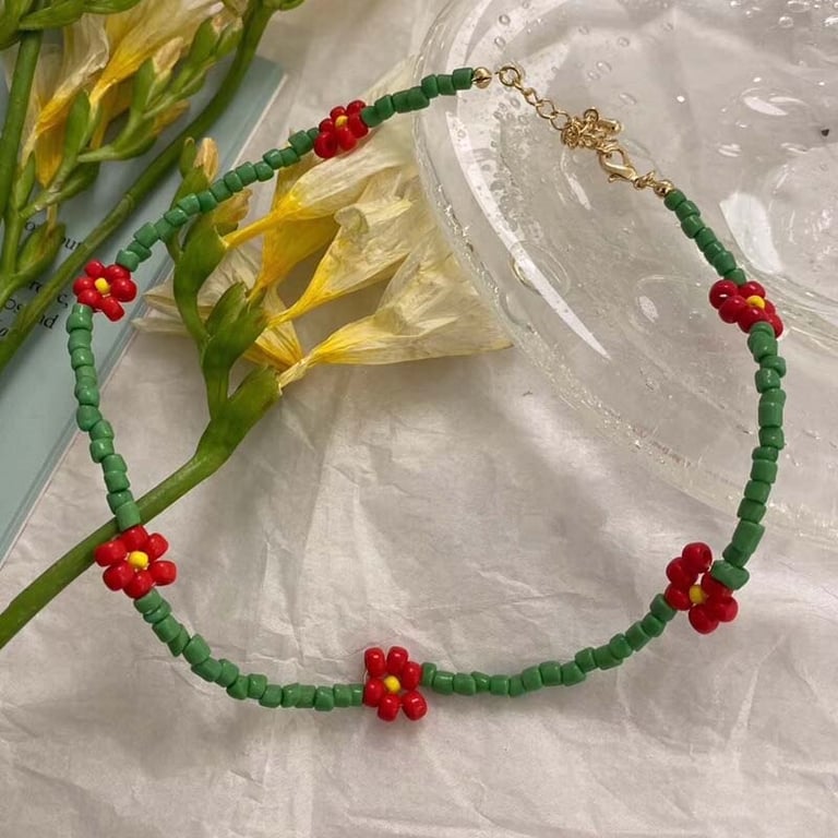Collar choker de cuentas para damas con flores