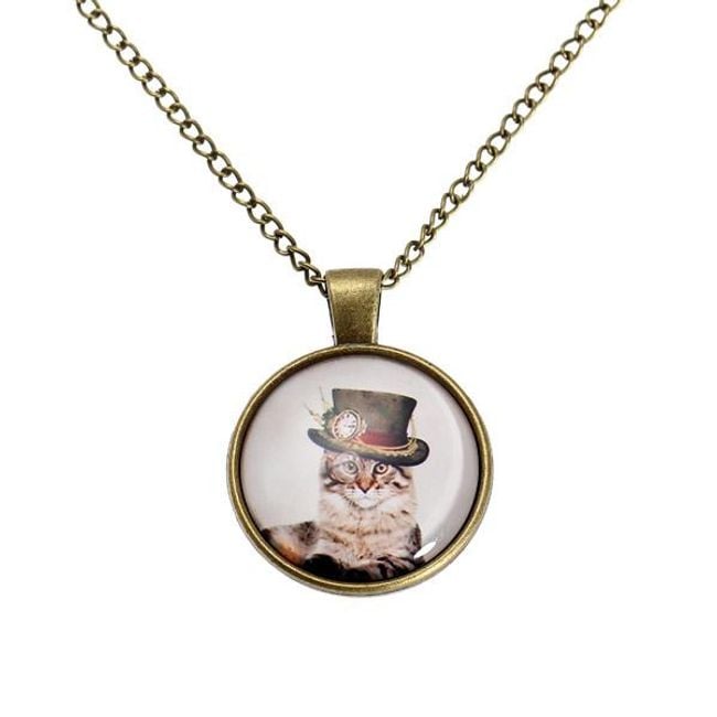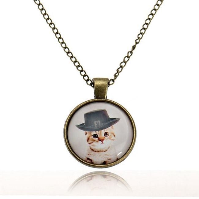 El collar con adorables gatos alegrará especialmente a todas las amantes de estas criaturas peludas. La cadena del collar es lo suficientemente larga. Puedes elegir entre varios motivos estilizados que te divertirán.