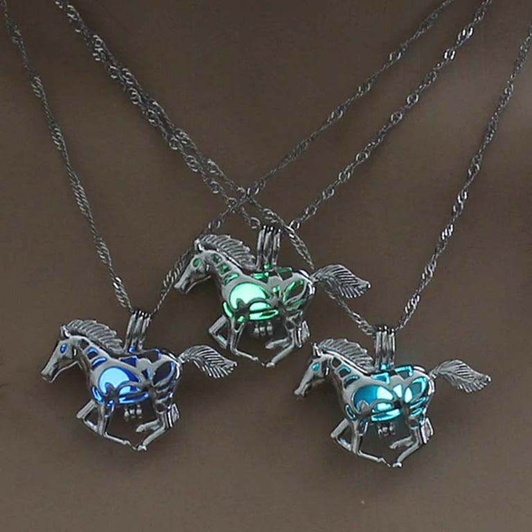 Collar con un caballito que seguramente alegrará a más de una niña o mujer. ¡Brillará hermosamente en la oscuridad!