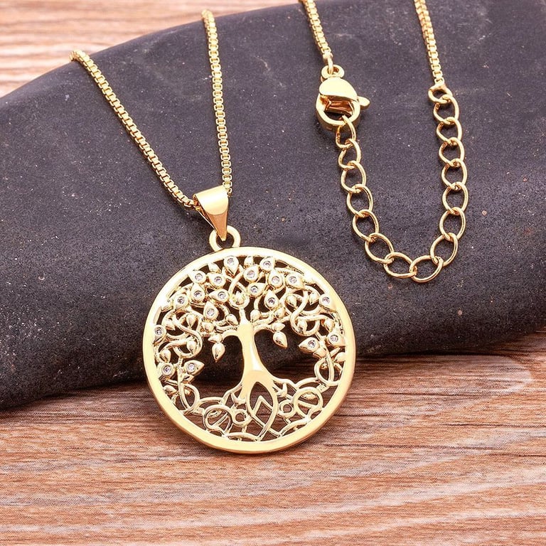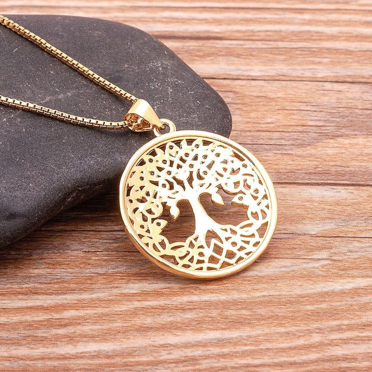 Collar de lujo con colgante redondo de árbol de la vida.