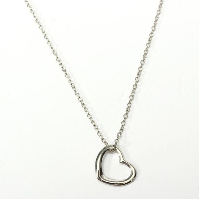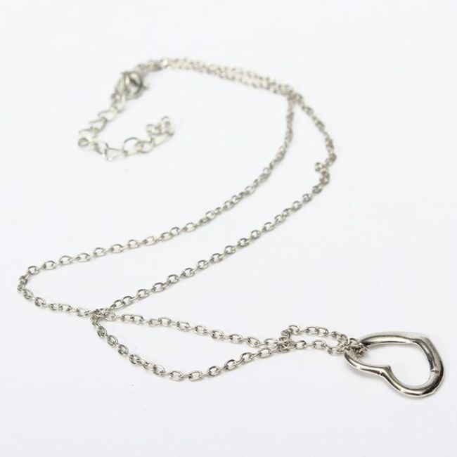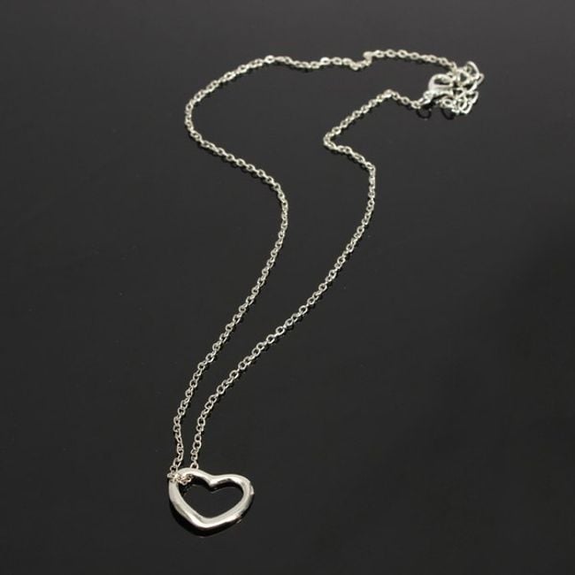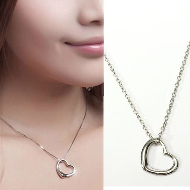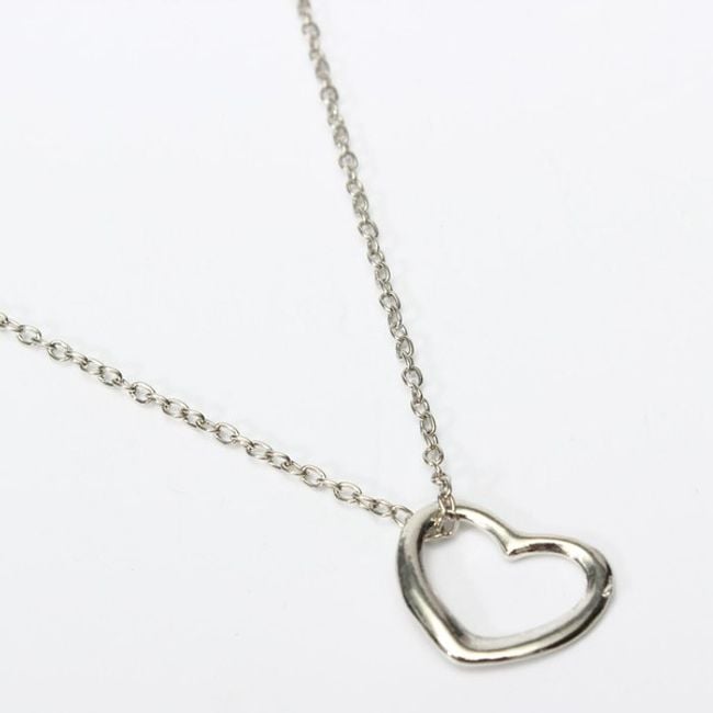 El elegante collar con colgante en forma de corazón es de color plateado. El colgante es de dimensiones pequeñas, lo que le da un aspecto muy delicado y suave. El collar también será un hermoso regalo.