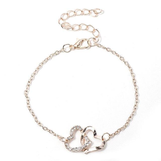 Collar de mujer de plata de ley adornado con un colgante de dos corazones entrelazados. El corazón está engastado con circonitas.