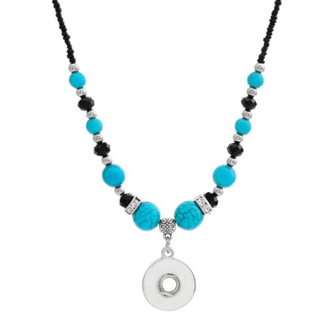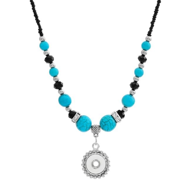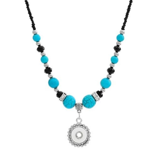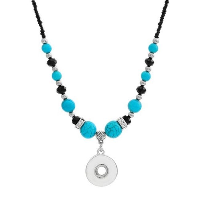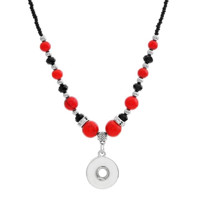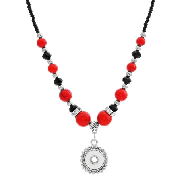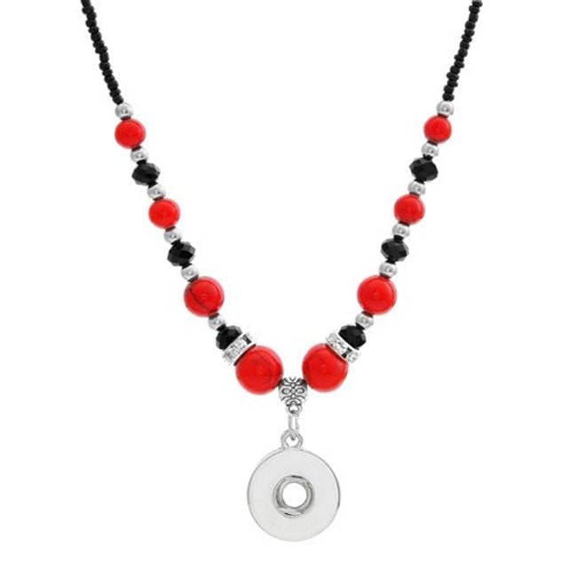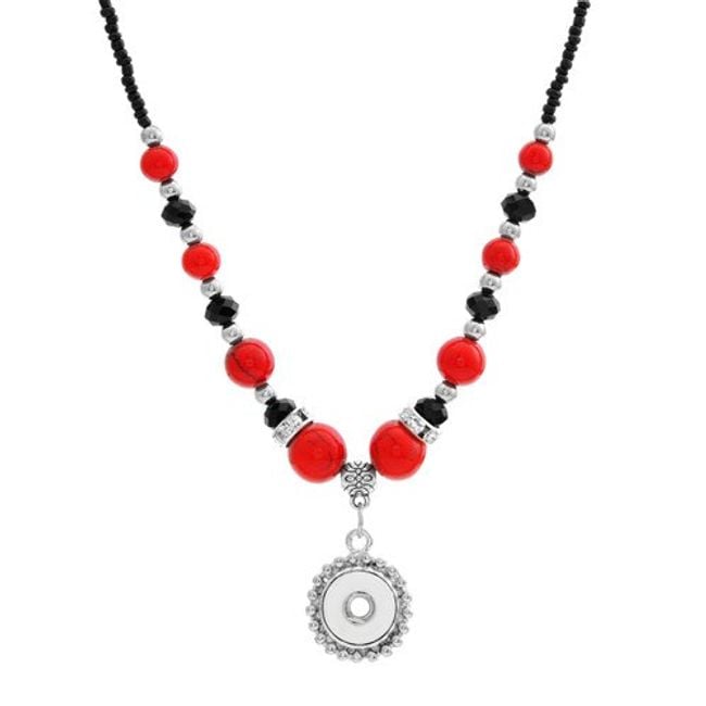 Los botones de pin son una novedad caliente en el mundo de la joyería. Puedes fijar el botón, por ejemplo, en este collar con cuentas turquesas o rojas.