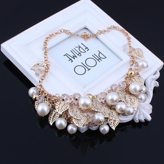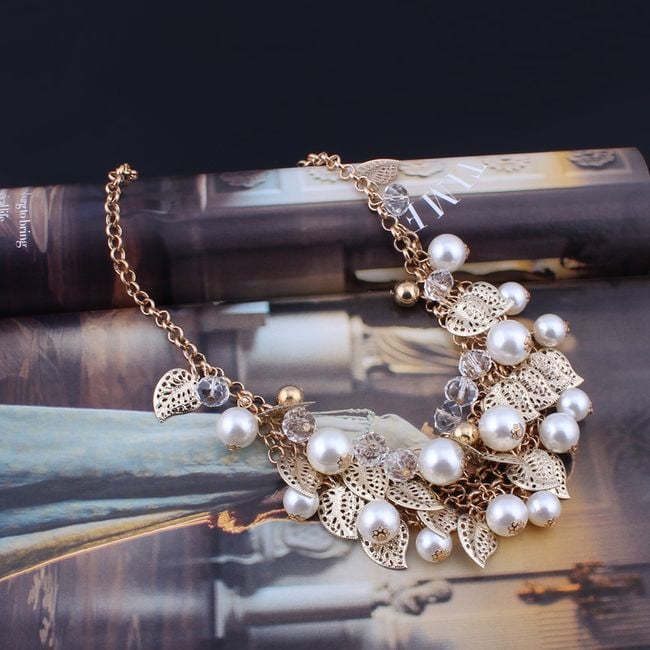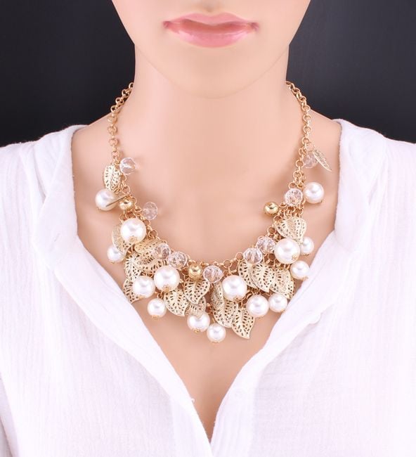 Collar con hojas y perlas