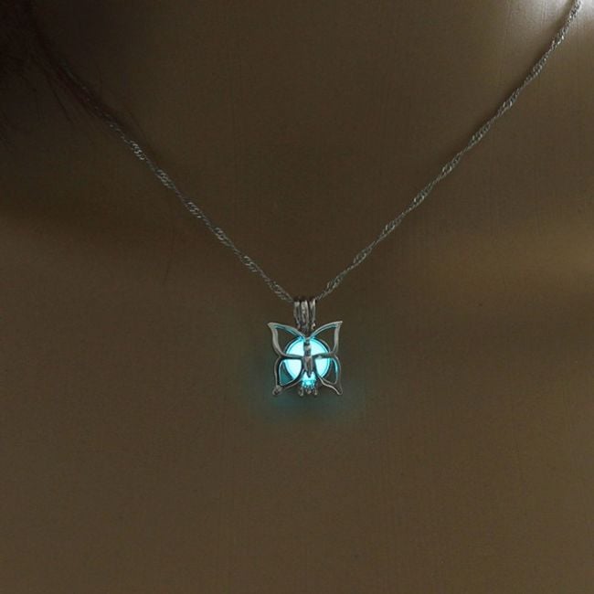 El collar tiene un diseño muy estiloso y brilla suavemente cuando se ilumina con luz.