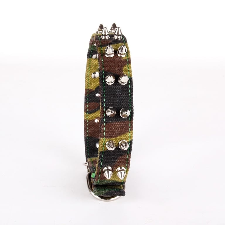 Collar de camuflaje para perros decorado con picos metálicos