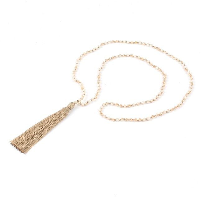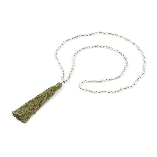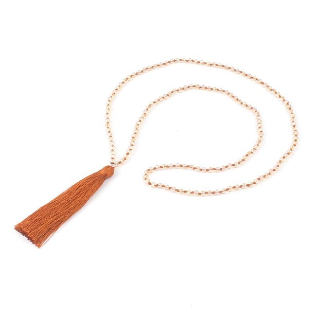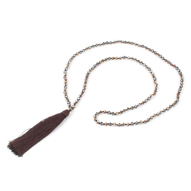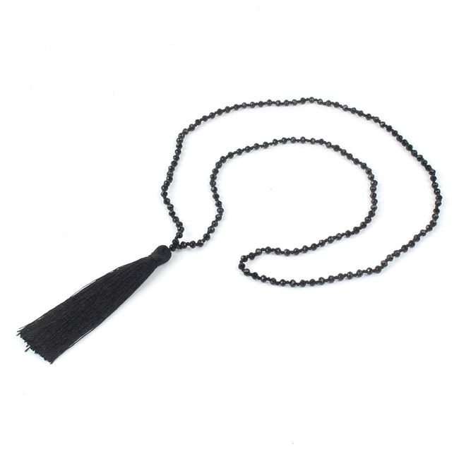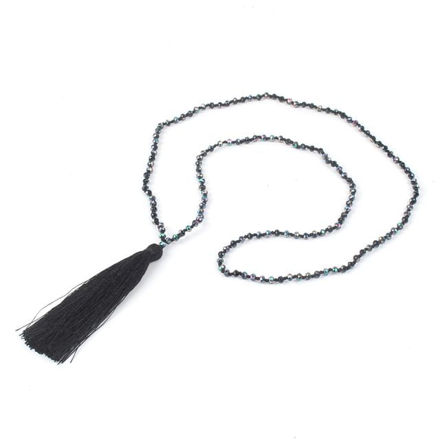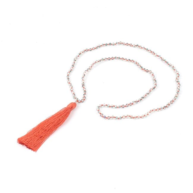 ¡Este collar con borlas es una necesidad de moda absoluta esta temporada! Su ventaja es que puedes llevarlo tanto con vestidos de verano como con jeans y blusas. Está hecho de cuentas finamente pulidas que reflejan la luz en todas direcciones. Al final cuelga una delicada borla de colores: ¡el gran éxito de este verano! Puedes elegir entre muchos colores o comprarlos todos; gracias a su excelente precio, te lo puedes permitir.