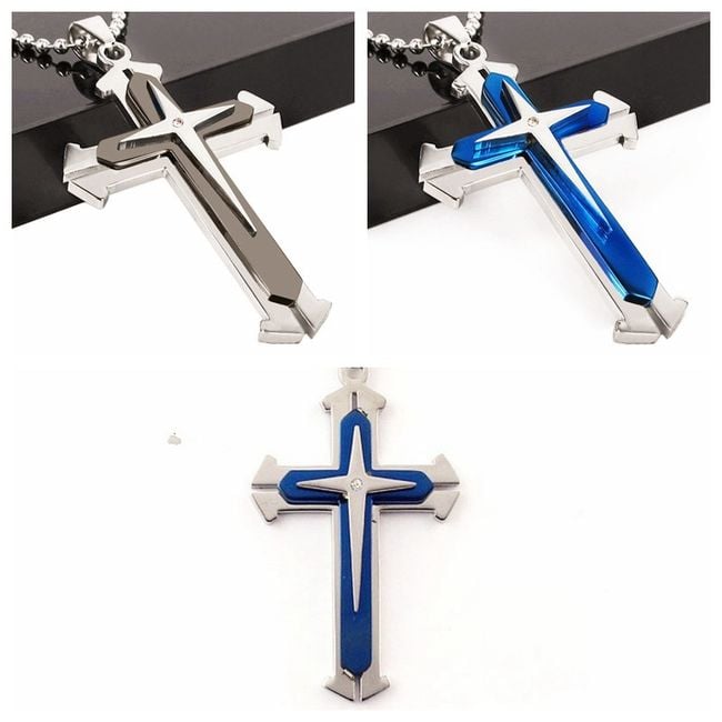 El collar de hombre con colgante tiene un diseño y acabado lujosos. Los bordes no son afilados y el centro de la cruz está adornado con una delicada piedra. Elija un color.