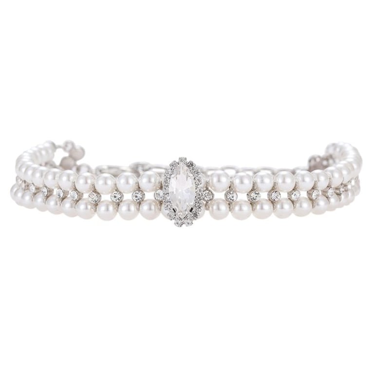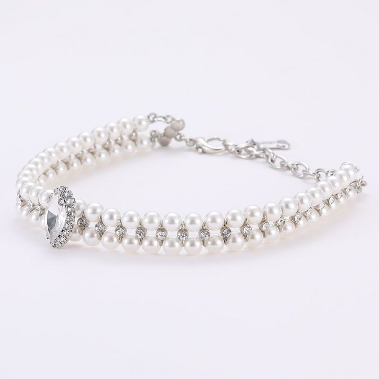 Collar de lujo para gatos con perlas y una piedra decorativa.