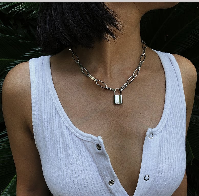 Collar de mujer con candado y corazón
