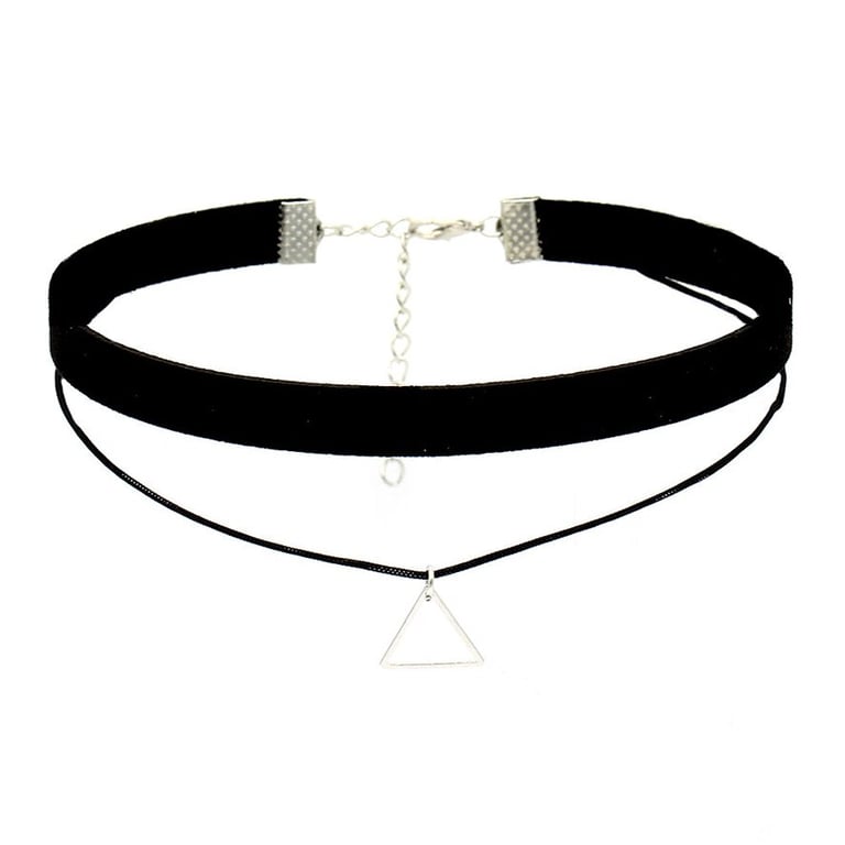 Un collar muy elegante para jóvenes señoritas. El collar es del estilo choker y tiene piedras negras colgando de él.