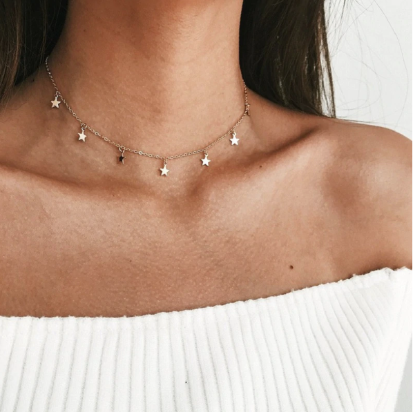 Collar de oro para mujer con un pequeño colgante.