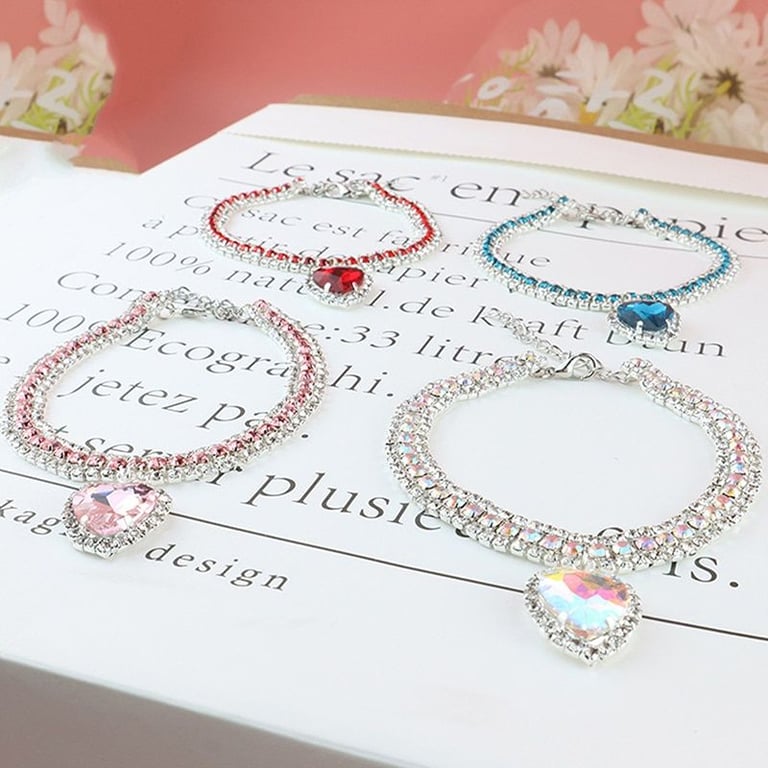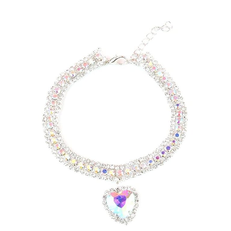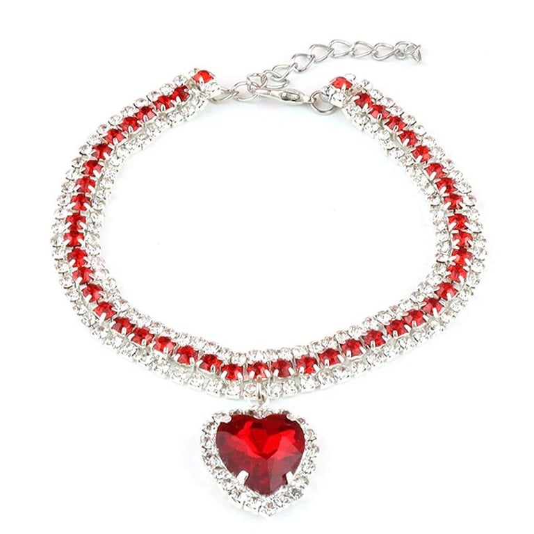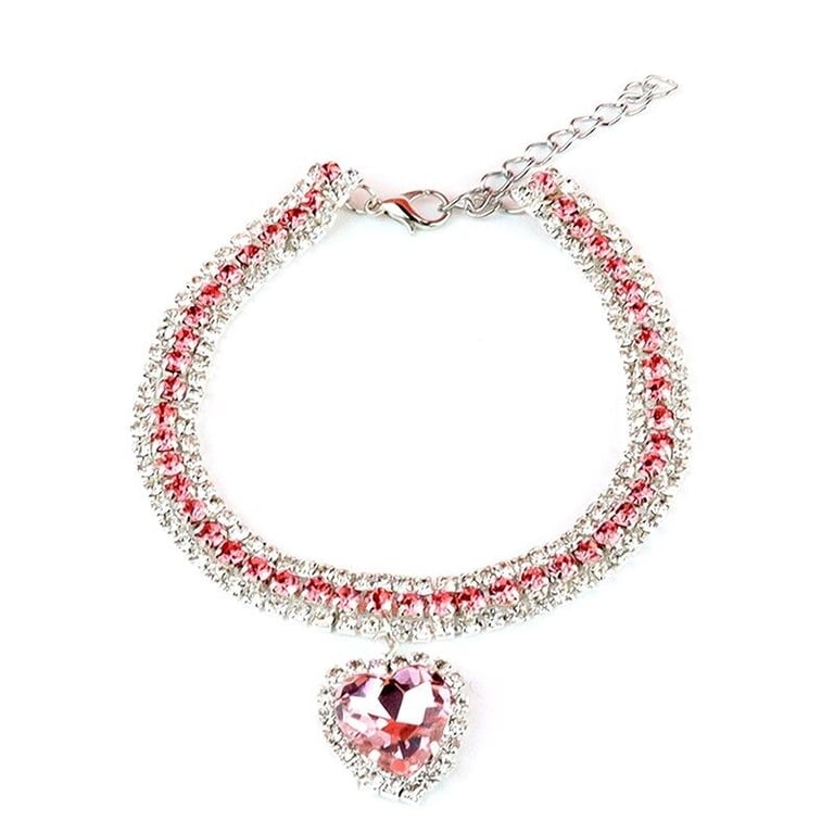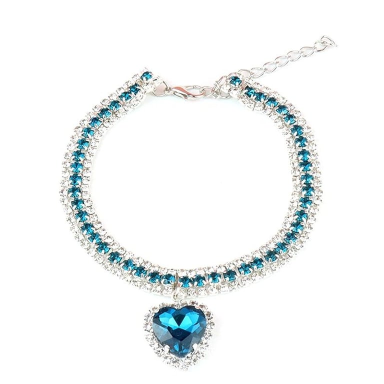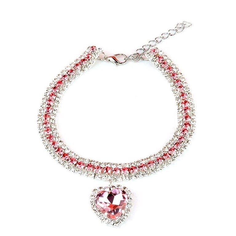 Hermoso collar de piedras para gatos con un colgante en forma de corazón.