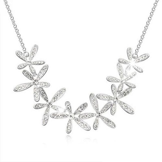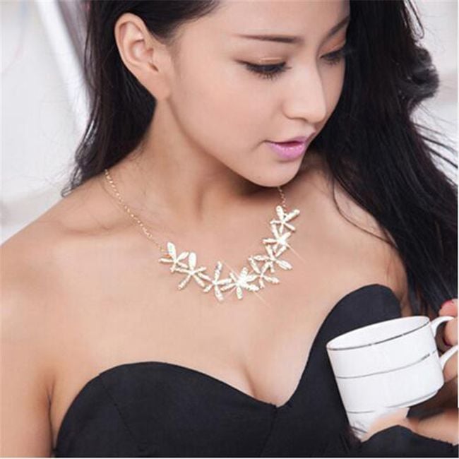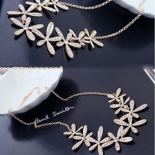 Collar elegante para mujer con flores y piedras de bisutería.