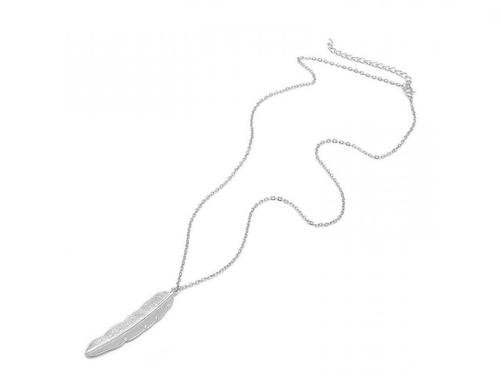 Collar largo de mujer con pluma