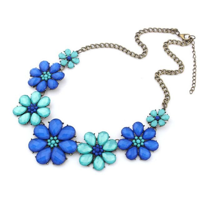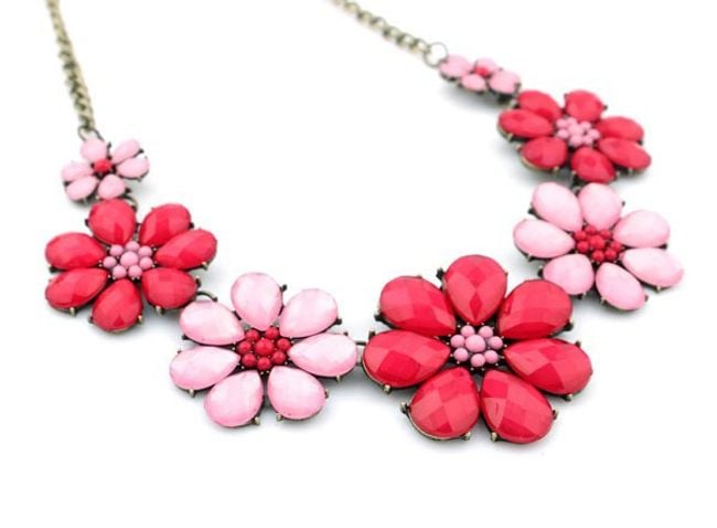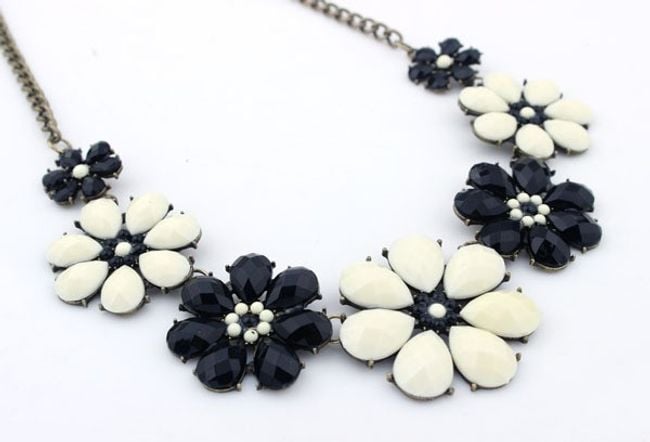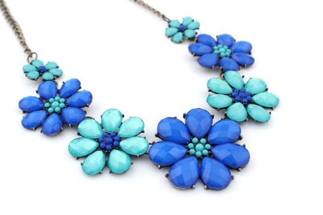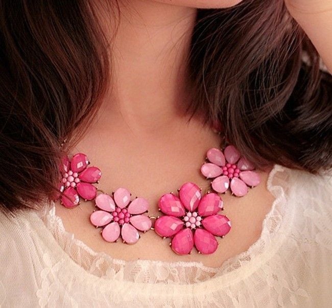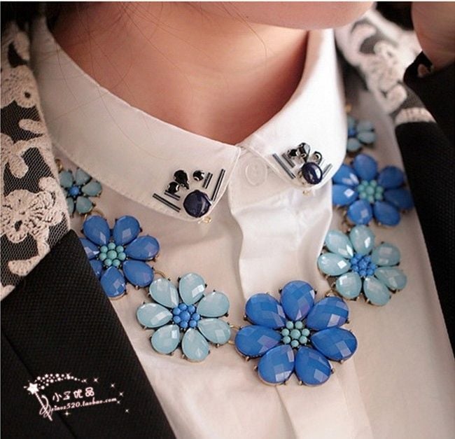 El collar está adornado con hermosas piedras y es adecuado para una blusa más sencilla.