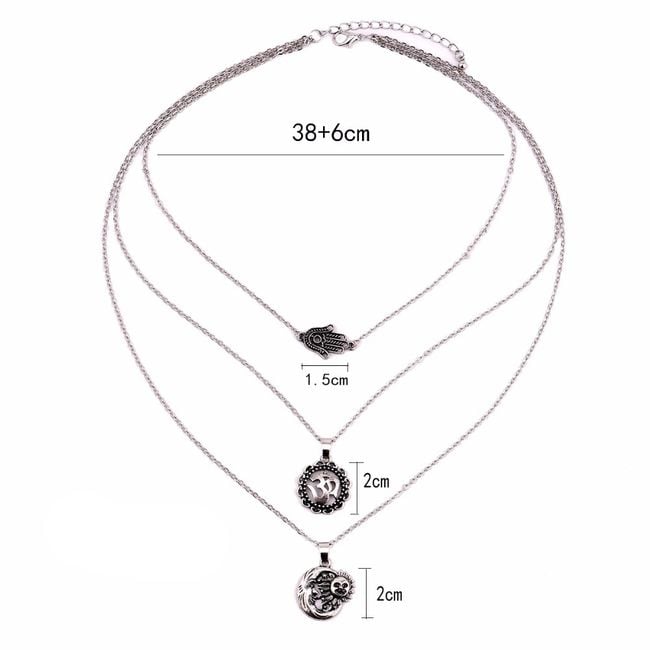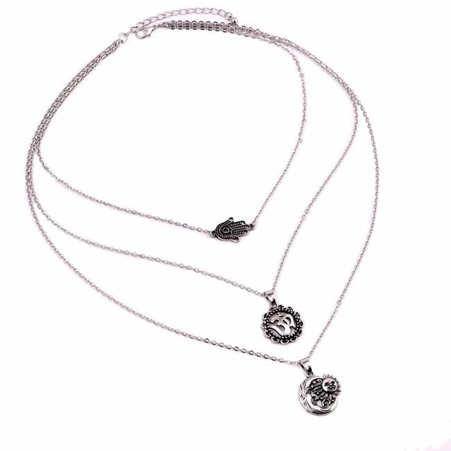 Hermoso collar oriental con colgantes en triple diseño.