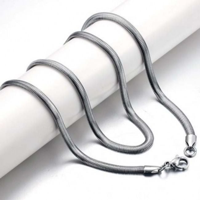 Collar diseñado especialmente para hombres en color plateado que por su forma recuerda ligeramente a una serpiente. Puedes elegir entre 3 variantes, cada una con diferentes dimensiones.