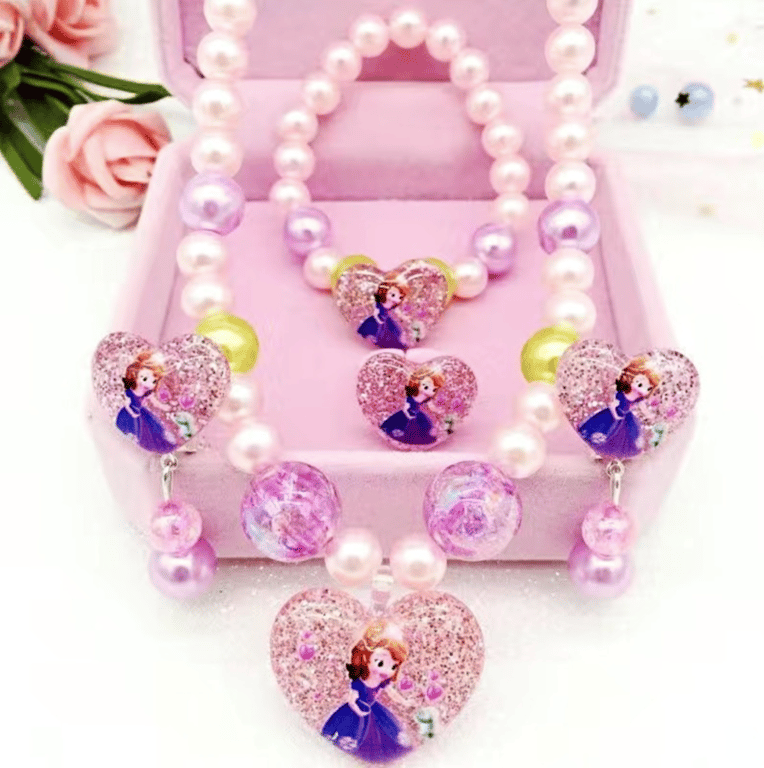 Joyas (collar, anillo, pulsera, pendientes) para pequeñas princesas con el motivo de Sofía la Primera.
