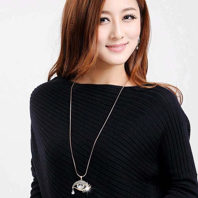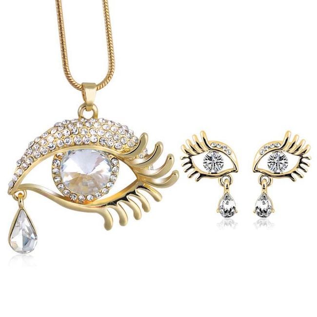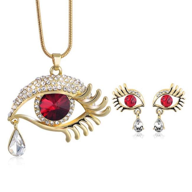 Collar y pendientes de mujer en forma de ojo colorido con piedras.