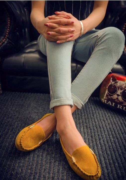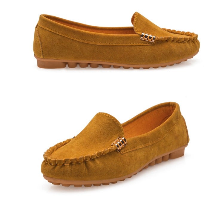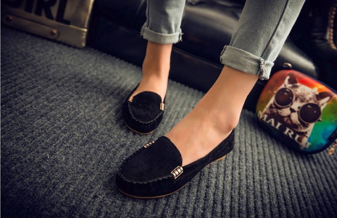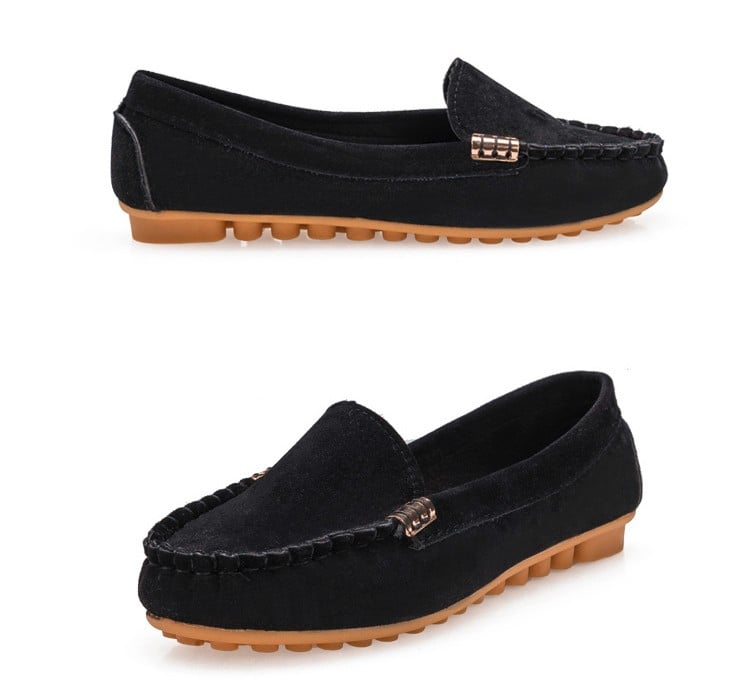 Cómodos y elegantes zapatos de mujer con suela oscura.