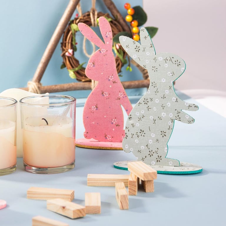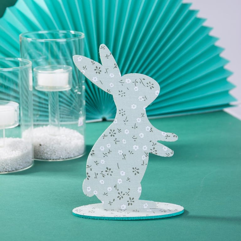 Los conejitos de Pascua con patrón floral son una decoración primaveral ideal para su mesa.