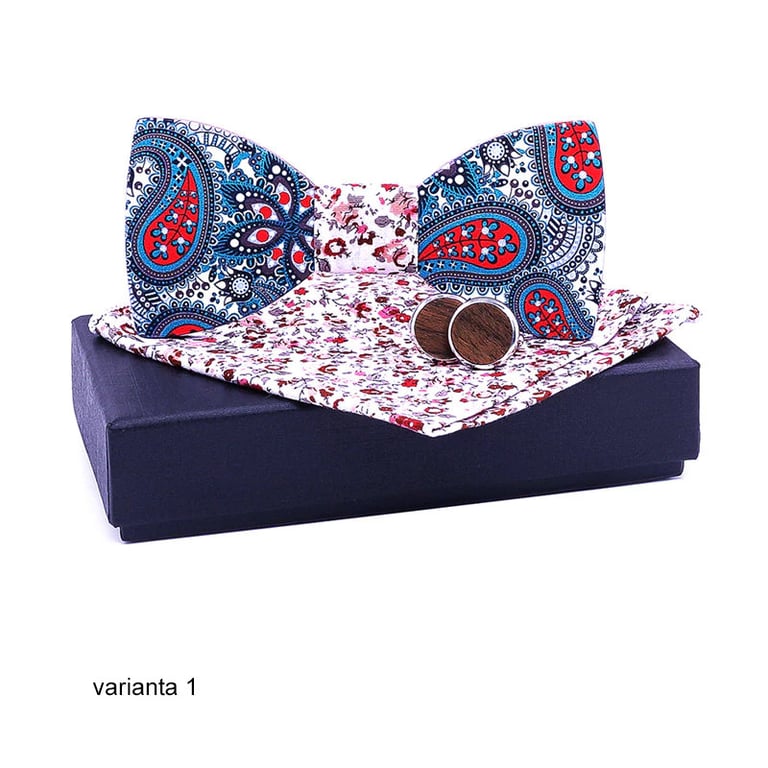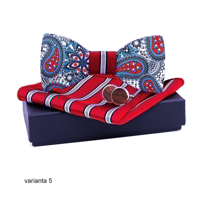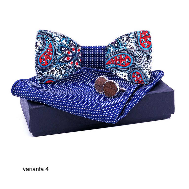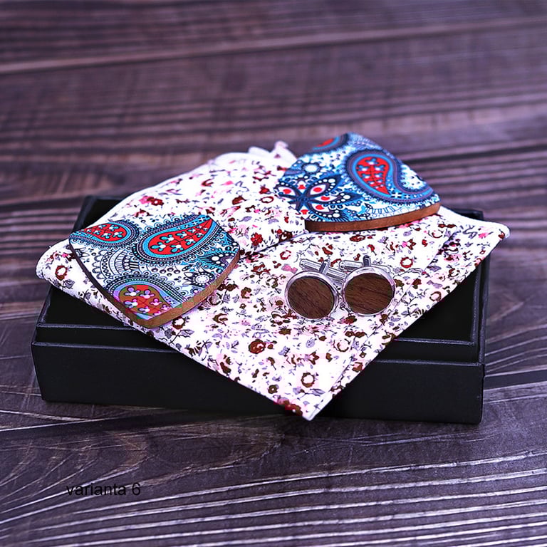Conjunto elegante para eventos sociales para cada caballero. Elija la variante que le quede mejor. En el paquete recibirá una pajarita de madera, un par de gemelos y un pañuelo de bolsillo elegante.