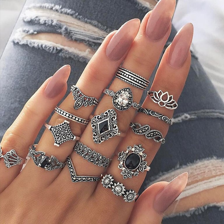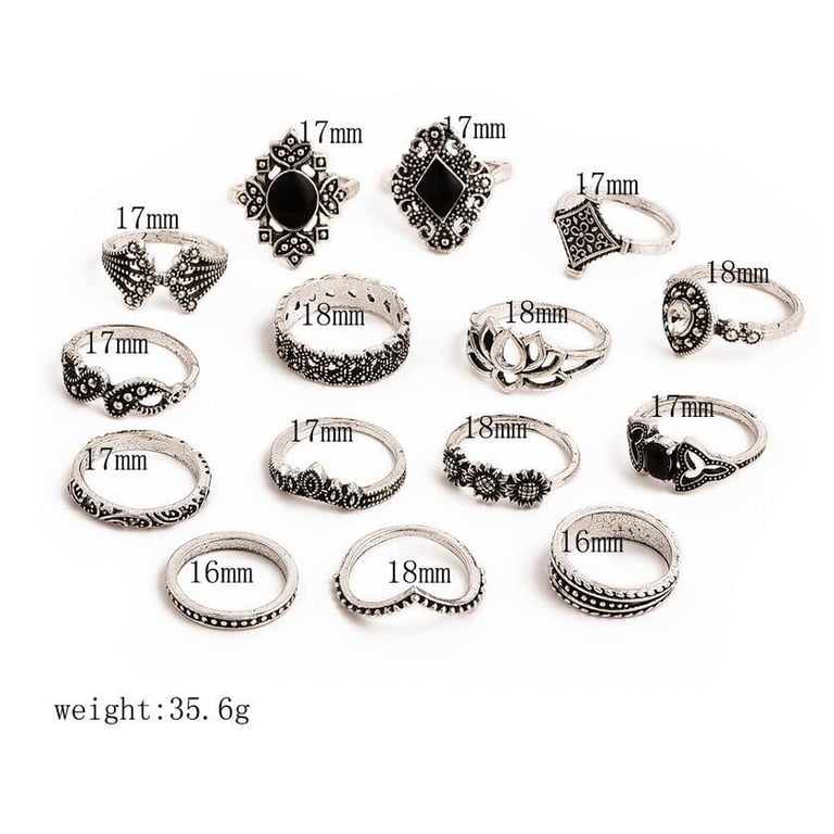Conjunto de 15 anillos originales fabricados con una aleación de metal de alta calidad.