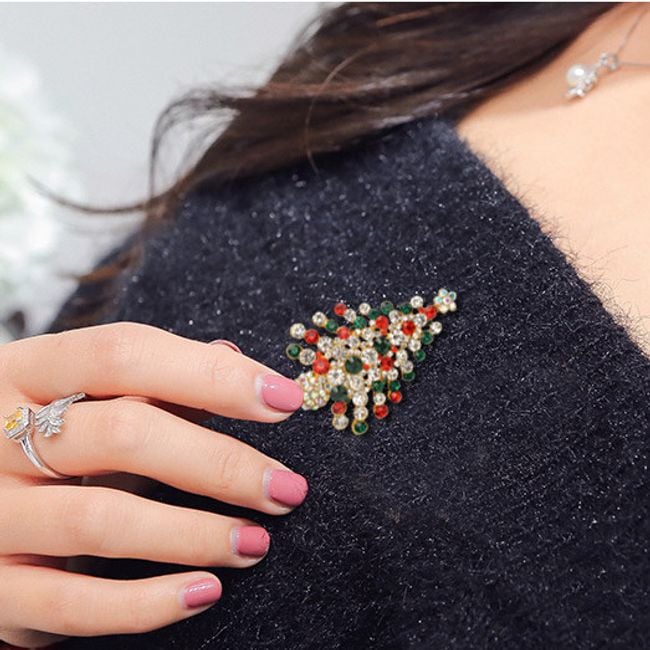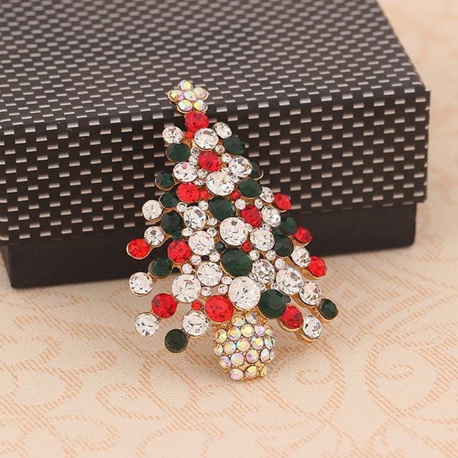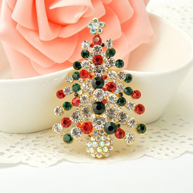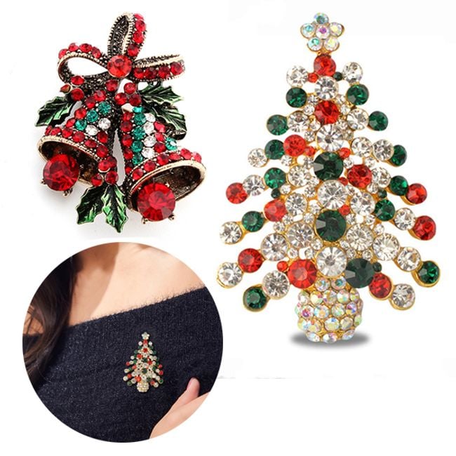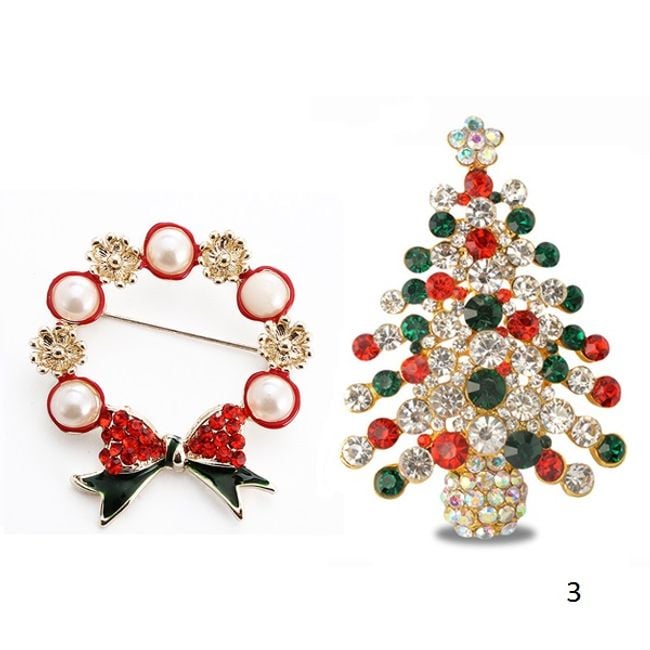 ¿Te gustan las elegantes broches? ¿Qué tal personalizar este accesorio de moda para la temporada navideña? El conjunto de dos broches incluye una miniatura de un árbol de Navidad ricamente decorado y otro broche en varias opciones para elegir.