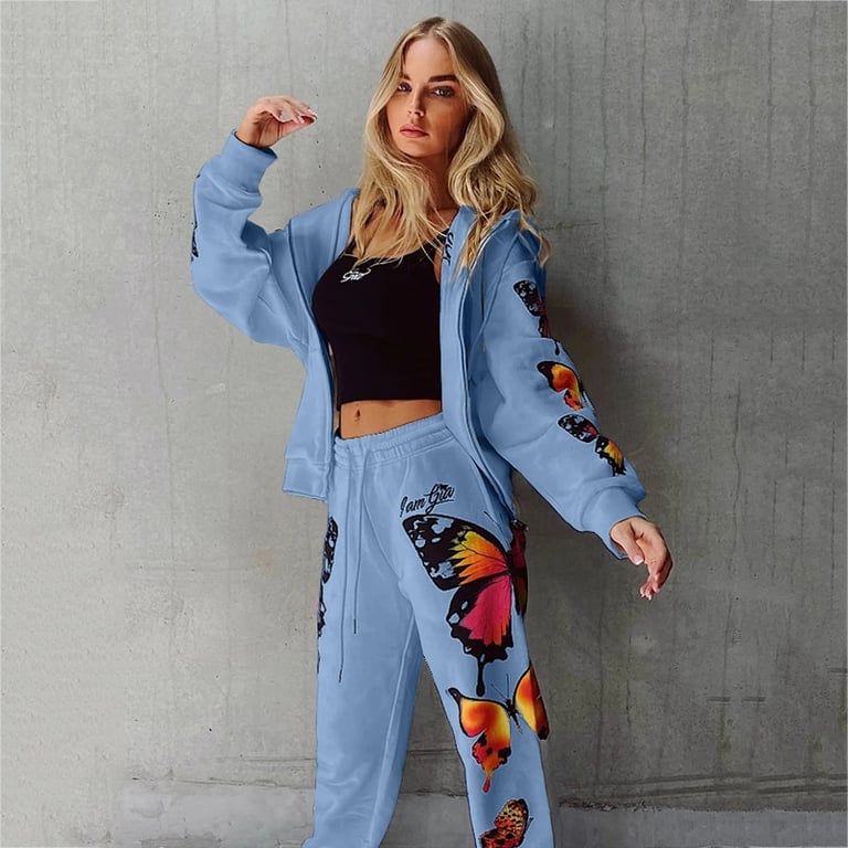 Conjunto de chándal para mujer con mariposas y sudadera con cremallera.