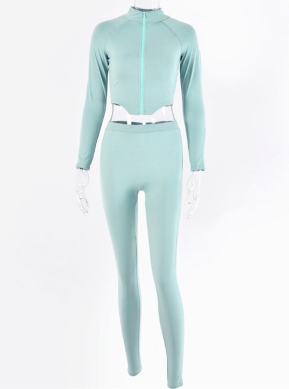 Conjunto de chándal original con sudadera corta en forma de top sexy con cremallera y cuello alto.