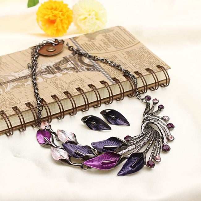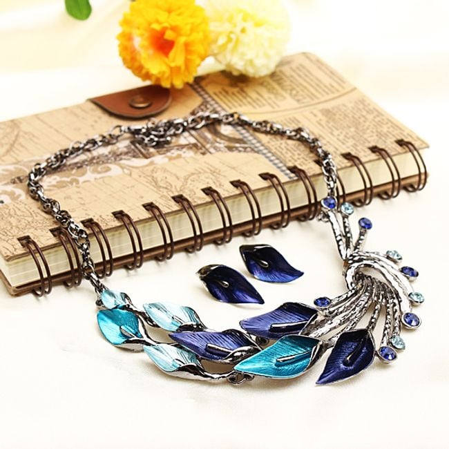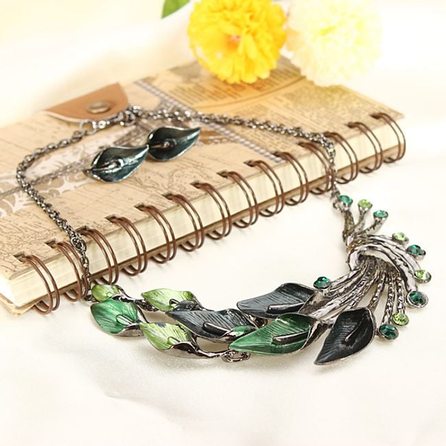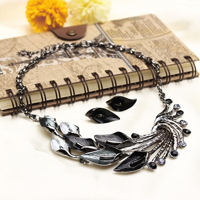 Conjunto de collar y pendientes con motivo de hojas.