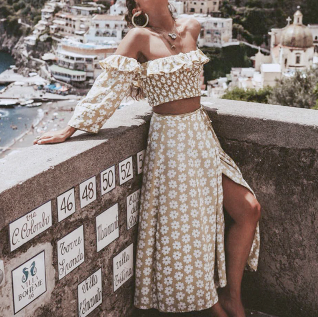 Conjunto de dos piezas largo de ocio para mujer con estampado floral.
