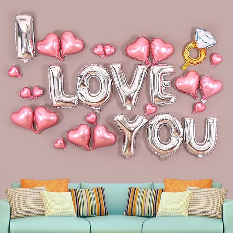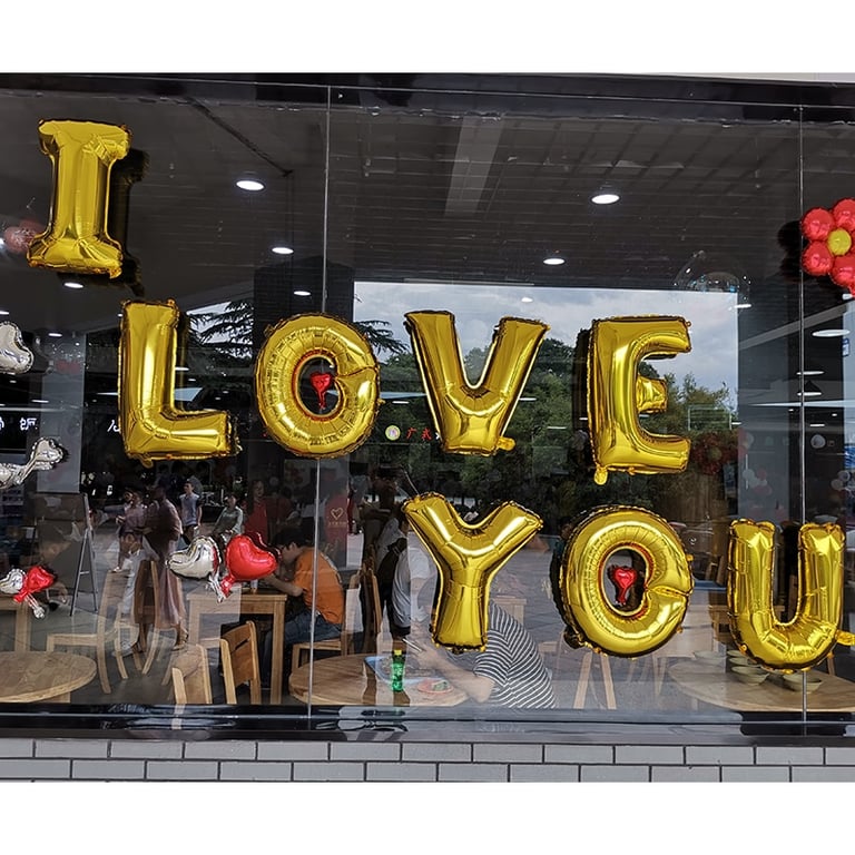 Globos decorativos Te amo, sorprende a tu pareja con esta decoración. En color dorado o plateado.