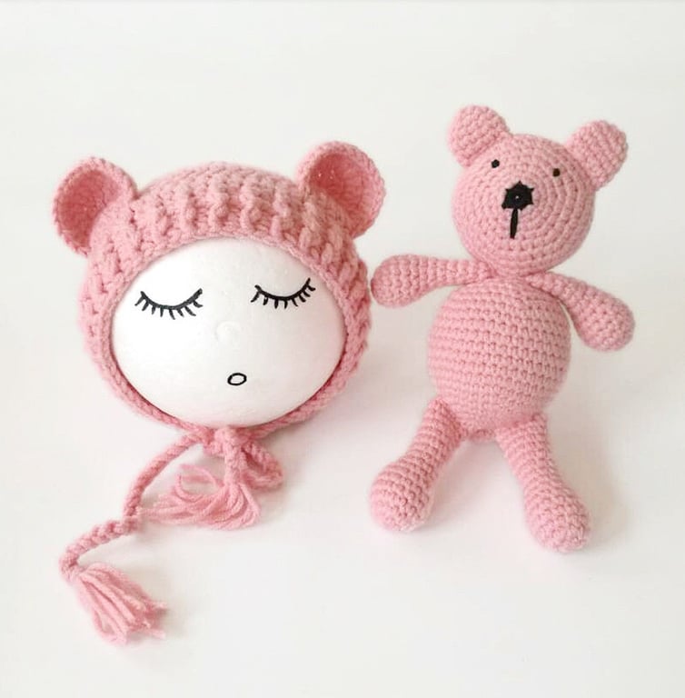 Conjunto de gorro infantil y osito 2 piezas