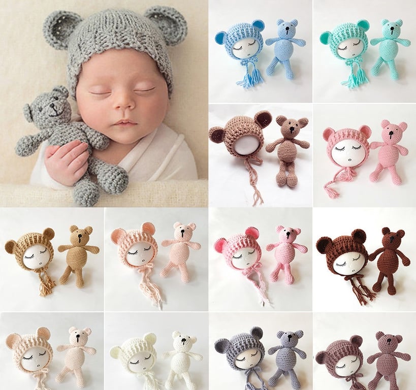 Conjunto de gorro y osito para niños 2 piezas